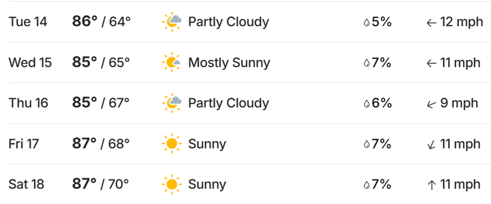 With lows in the mid to upper 60s and highs in the mid 80s, Naples is going to have picturesque weather throughout the week. The wind shouldn’t play a huge factor either, with sustained winds around 10mph. The Franklin X-40 ball will definitely play faster in the morning, and slow down throughout the day as the sun and heat increase.