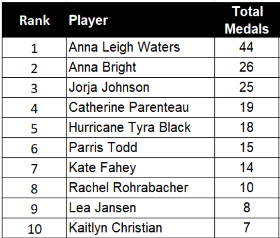 Top 10 Total Medals - Women