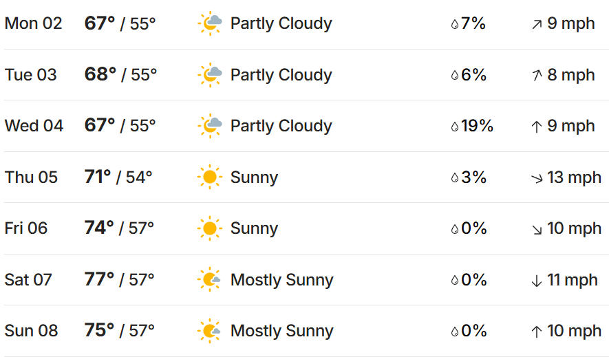 Just like Mesa last week, Newport Beach has picturesque weather throughout the tournament. Temperatures are in the high 50s as the low and high 70s as a high. Additionally, the wind doesn’t seem like it will cause any issues, other than on Thursday, perhaps.
