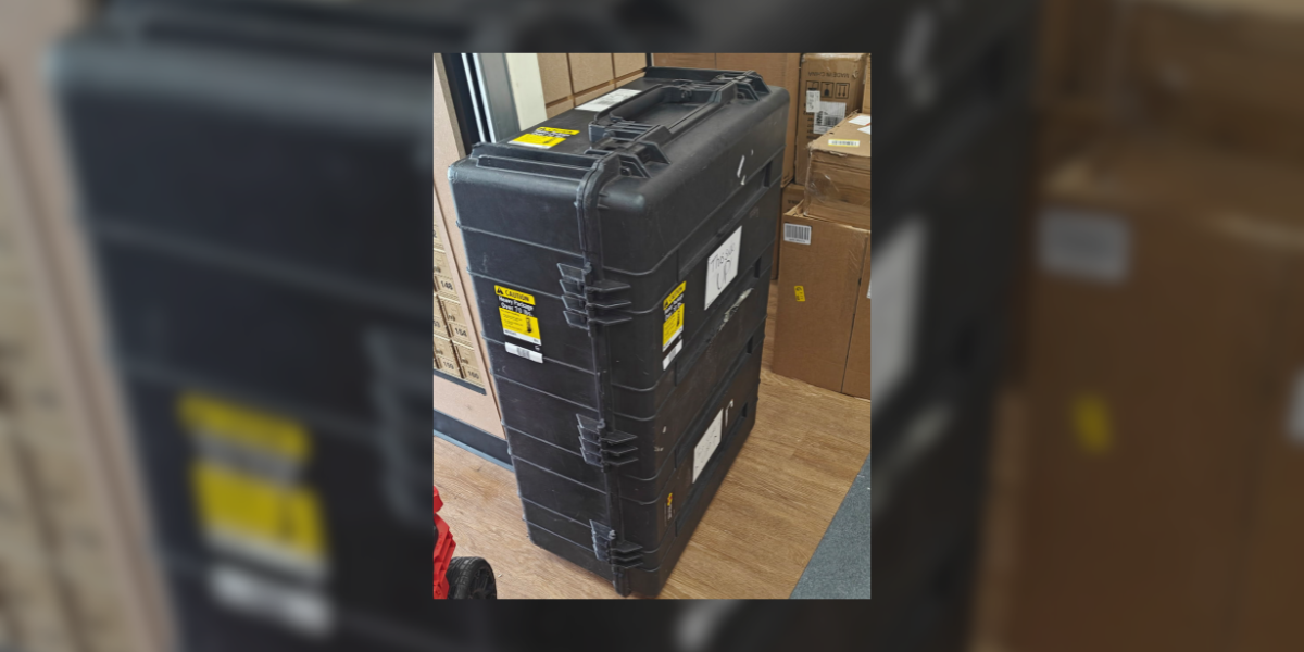 A black, heavy-duty protective case that measures 19 inches long, 10 inches wide, and 30 inches high, and weighs 167 pounds, went missing off a truck in Austin, TX.