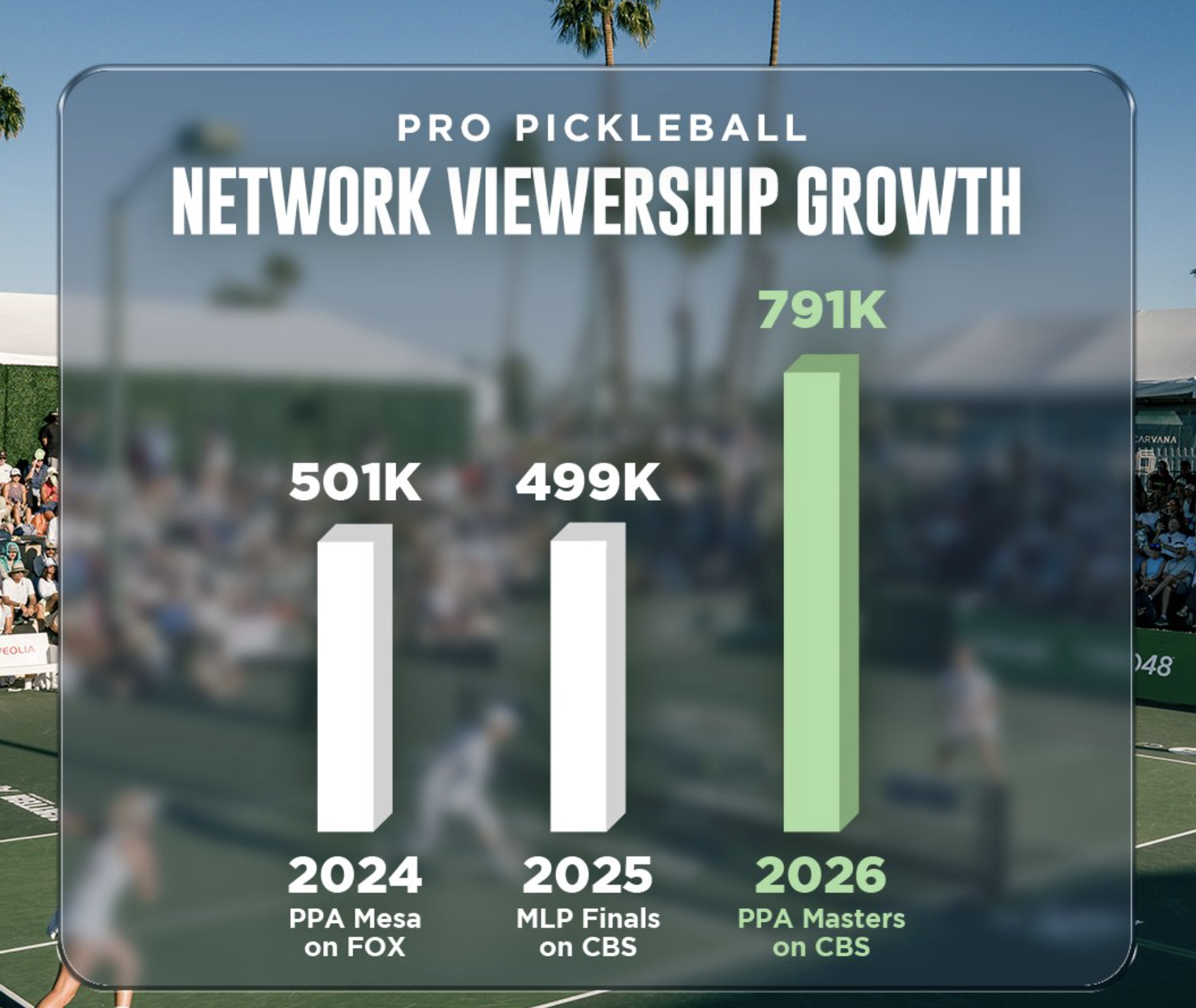 This also shows significant growth for pro pickleball compared to previously televised events.