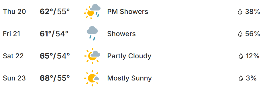 Weather delays have been issues for the amateurs thus far in the tournament. Hopefully the precipitation can dissipate. It looks like Thursday and Friday may cause the most issues, with rain anticipated.
