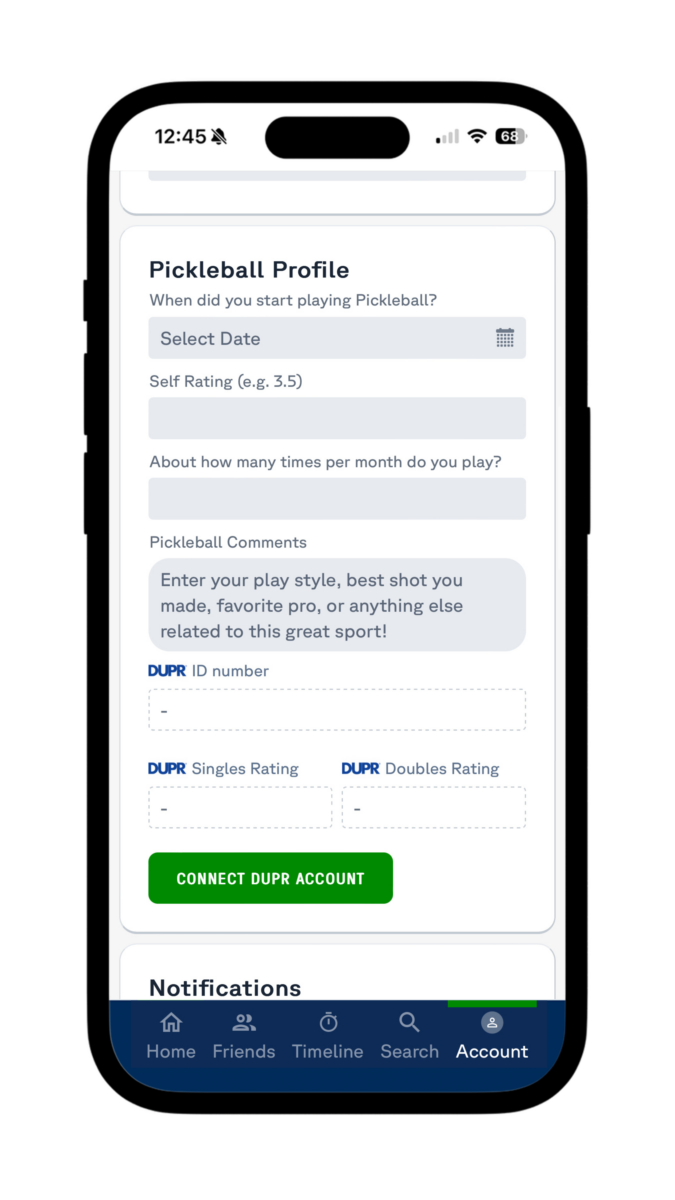 3. Link DUPR to Pickleball Den under Account Settings. To link your DUPR: