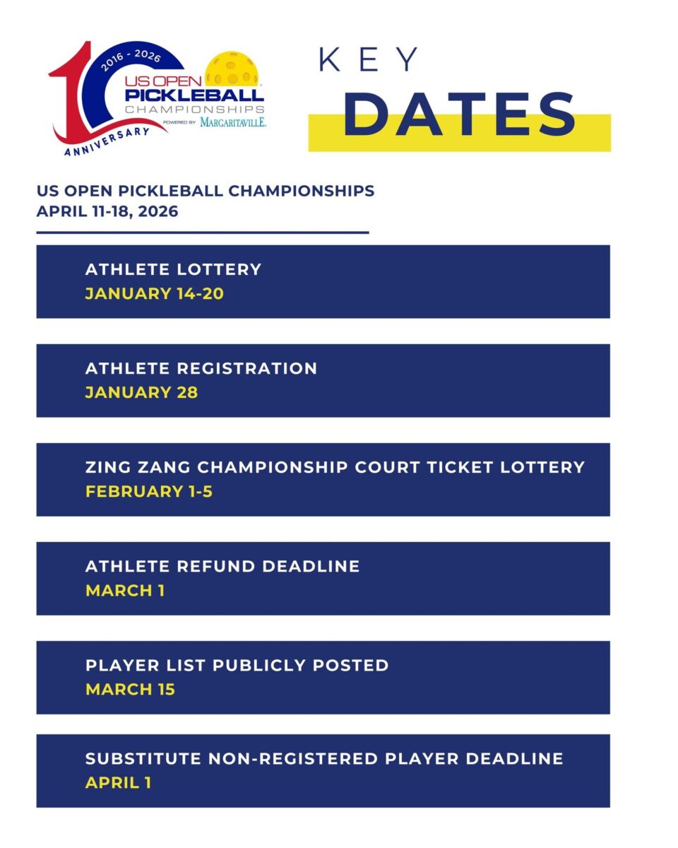 While the US Open Player Lottery removes the rush, preparation still matters. Get your accounts set up early, understand eligibility rules, and mark the key dates so you’re ready to be part of a historic 10th anniversary of the US Open Pickleball Championships.